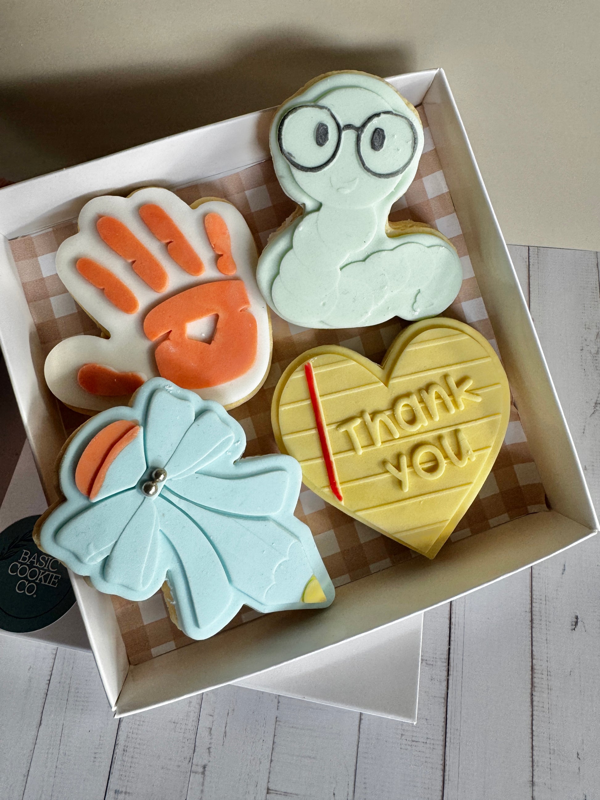 Each cookie is baked fresh, carefully decorated, and presented in a ready-to-gift box. Perfect for end-of-year thank-yous, educator appreciation week, or classroom gifts.